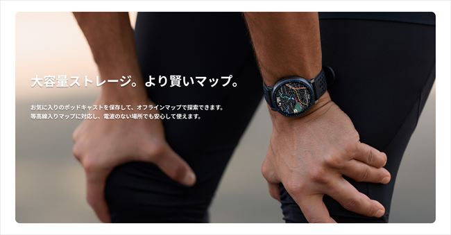 Amazfit Active Maxは、価格帯MAX級となる4GBの大容量ストレージを搭載しています。オフラインマップを複数ダウンロードでき、通信環境が不安定な場所でも地図機能を存分に活用できます。さらに、ソフトウェアアップデート後には約100時間分のポッドキャスト番組を保存可能となり、スマートフォンを持たずに音声コンテンツを楽しめます。