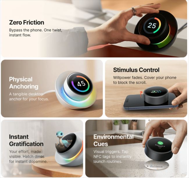 多くのフォーカスアプリがスマートフォンの中で完結しようとする中、Focusaurはあえてデスクの上に「置物」としての物理デバイスを介在させています。この存在が、作業中にふとスマートフォンを手に取ろうとする自分を制止する、静かなリマインダーとして機能するのかもしれません。