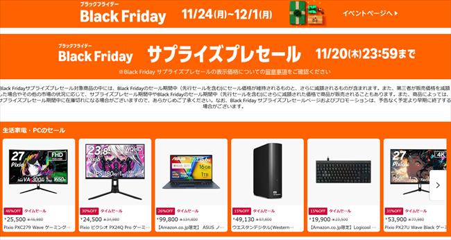 Amazonにて「Black Friday サプライズセール」が開催中しています。